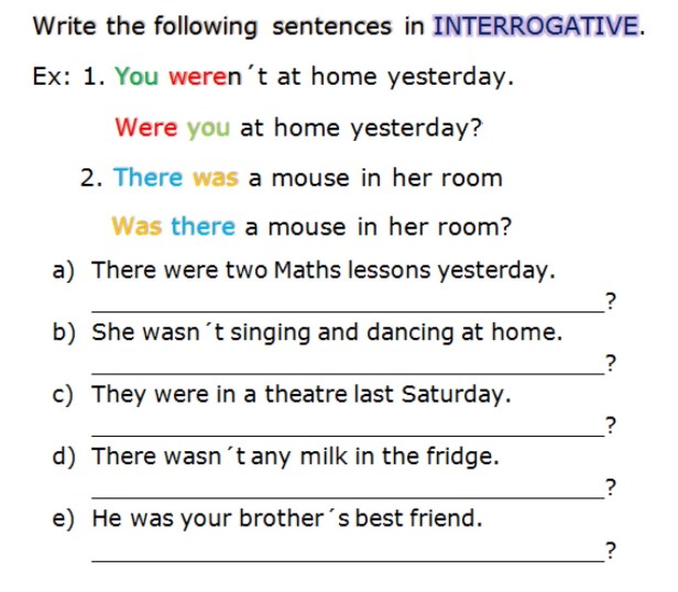 1. Write the following sentences in interrogative. (Escribimos estas oraciones en interrogativa)