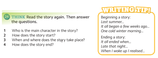 4. Read again and answer these questions. Also read the WRITING TIP.