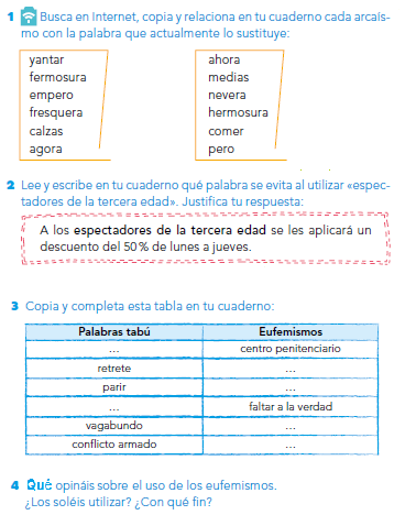 2. Trabajamos los arcaísmos, tabús y eufemismos.