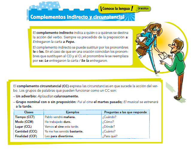 En lengua continuamos con la gramática de la nueva unidad. Hablamos del complemento indirecto y los complementos circunstanciales que los conocemos de sobra.