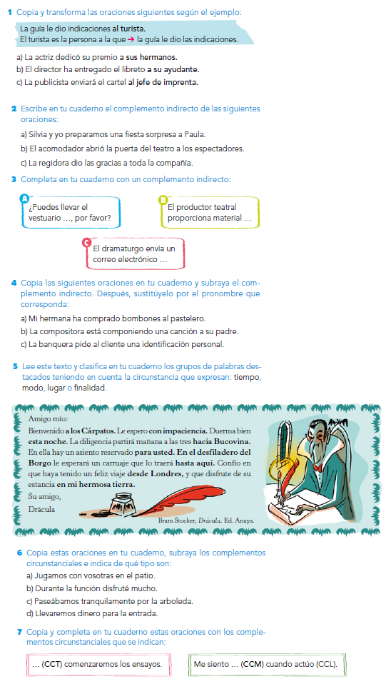 2. Trabajamos el complemento directo y los complementos circunstanciales.
