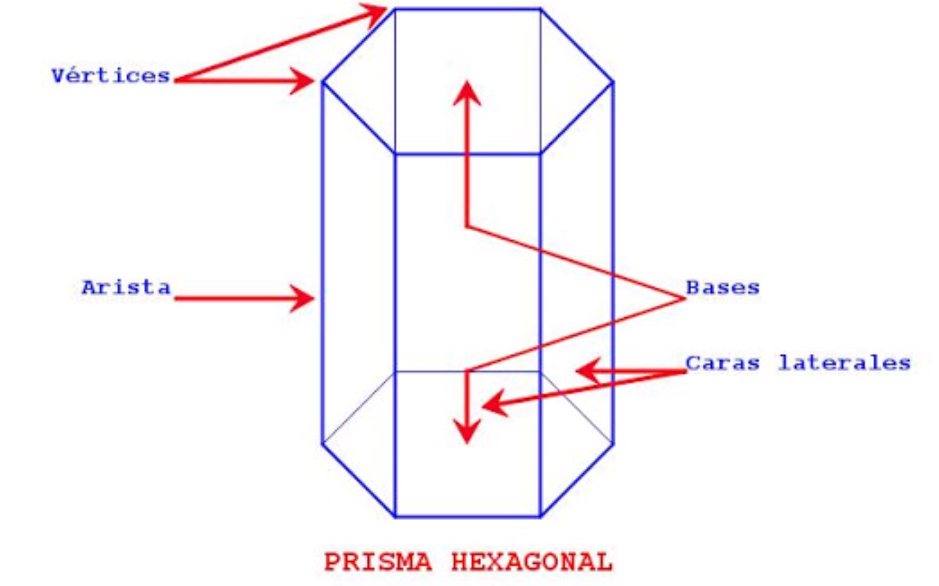 Por ejemplo, el prisma hexagonal de arriba tiene dos bases y seis caras laterales. Pero en general tiene ocho caras.