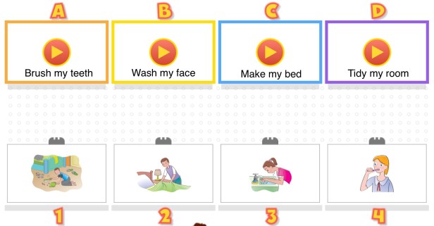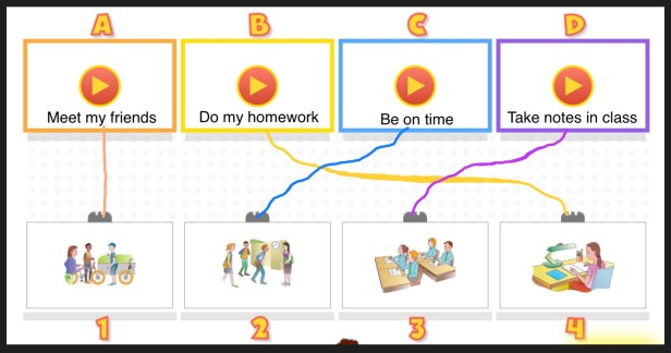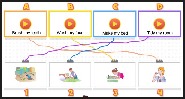 1. Look, read and match the letters with the numbers.